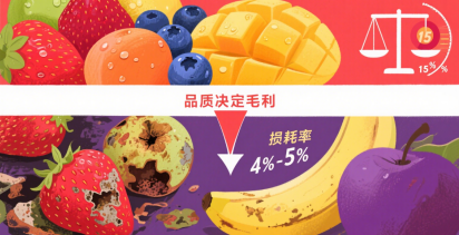 水果的毛利率一般也控制在 15% 左右。和蔬菜类似,水果的经营重点在于品质管理。消费者对水果的新鲜度、口感极为敏感,优质的水果能卖出更好的价格,从而提升毛利。