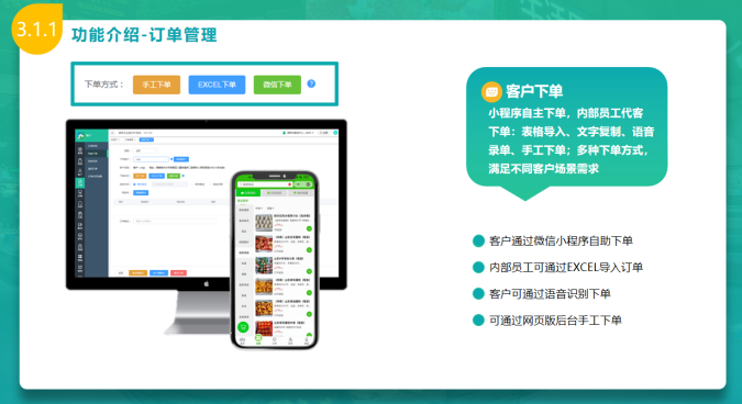 小程序自助下单、语音下单、Excel 一键导入,蔬果云生鲜配送系统 1 分钟自动汇总订单。