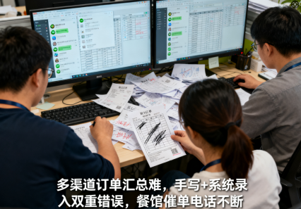 刚起步的老板最爱犯 “省钱错”—— 全靠微信、电话接单,餐馆发语音报菜名,食堂临时加货改规格,2 个员工抄到凌晨两点,转天还能出 5 单漏记、3 单错写。更糟的是,零散订单汇总要 2 小时,等采购赶到批发市场,好货早被抢光,直接错过最佳备货窗口。